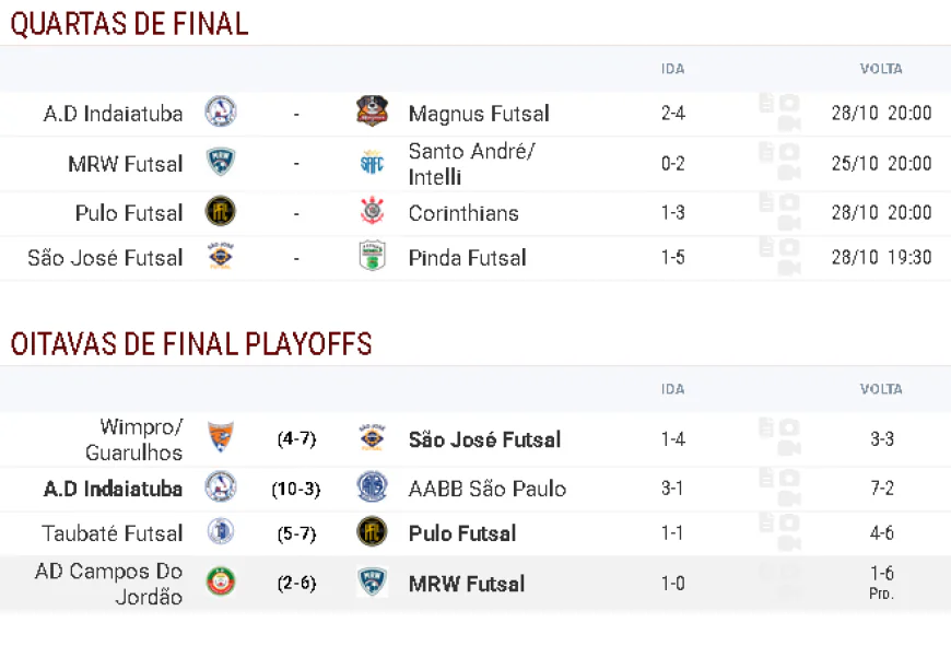 Nos jogos de ida da competição, Magnus, Corinthians, Pinda e Santo André venceram e tem vantagem para o duelo da volta.